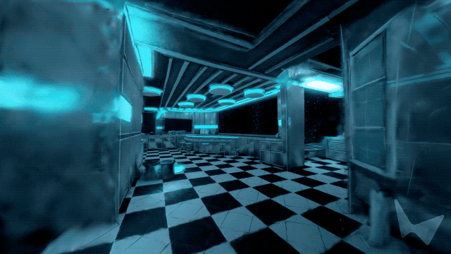 ▲文本提示词:一个融合中世纪餐厅美学与轨道科技的空间站厨房,拥有棋盘格地板和不锈钢装置,在柔和的水绿色灯光下熠熠生辉