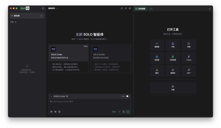 其中,最核心的功能 SOLO 模式,是之前所有同类产品,没有探索过的 AI 编程工具形态。它提供了 SOLO Coder 和 SOLO Builder 两个智能体,一个针对专业的开发者用户,处理复杂的项目开发问题;一个针对个人和小团队,真正做到一句话做个产品,能上线发布的产品。