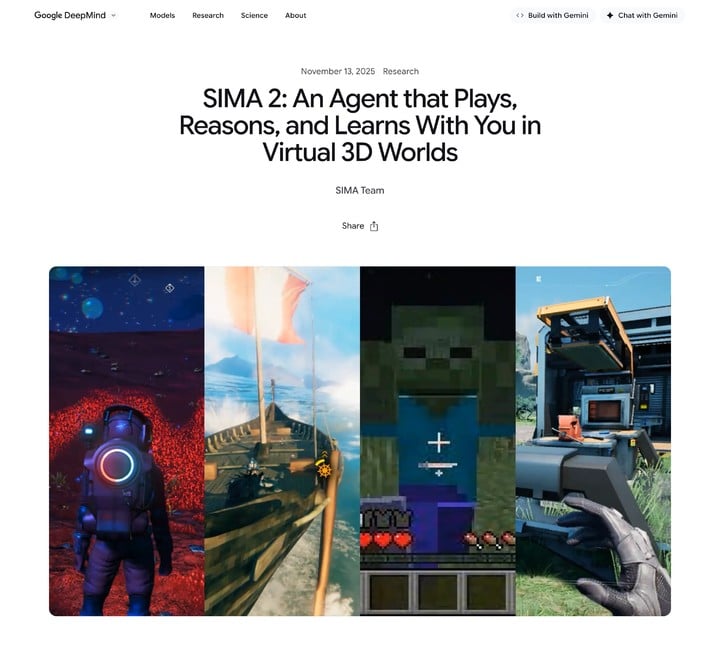 Google DeepMind 推出游戏陪玩 Agent SIMA 2