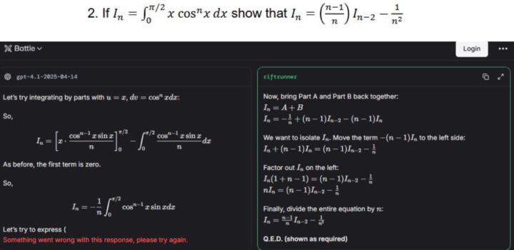 继续在网上找了更多网友的分享,有人说 riftrunner 不失所望,是唯一一个解出下面这道数学难题的模型。