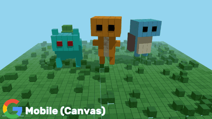 最直观的例子是这个 3D 宝可梦的动图,在 Web 端生成的 3D 动图背景简单,宝可梦的形象也很抽象;手机端的色彩、背景都做的更好。