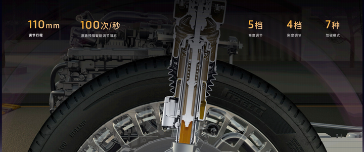 相比传统单腔或双腔空悬,三腔结构可通过调节气室组合实现四种刚度模式,配合 EDC 电磁减震器和前双叉臂+后五连杆底盘,理论上能更灵活地应对不同路况。