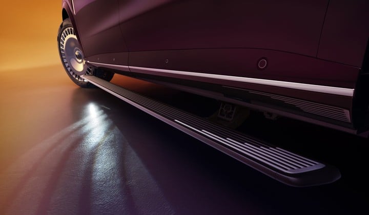 该踏板采用毫米波雷达感应,用户携带钥匙靠近时,踏板会提前展开 15°作为预迎宾状态;完全解锁后,将在 0.3 秒内展开至最大 120°,位置更低平,便于上下车。踏板整体采用航空铝合金锻造,承重约 200kg,并集成谐波减速器与四连杆机构。此外,踏板表面可以同步投射「鲲鹏展翅」主题动态光效,与前脸灯语形成视觉呼应。