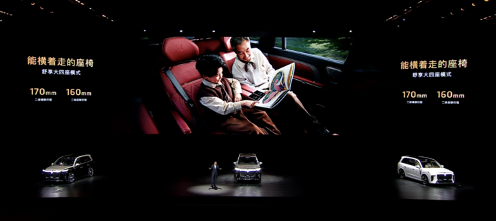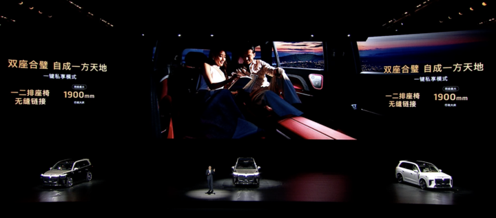同时新车二排右侧座椅支持 22 向电动调节、零重力模式和 26 点按摩,配备独立扶手屏;三排座椅同样提供通风、加热与电动调节功能并支持 175mm 前后电动滑动可向后调节靠背角度达 30°。座椅支持单独或整体放倒,实现 6 座、5 座、4 座等多种模式切换。