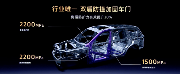 新车车身结构采用 78% 高强钢铝混合材料,其中 A 柱与 B 柱区域使用抗拉强度达 2200MPa 的热成型钢。前后车门均配备双层防撞梁,官方测试数据显示,侧碰工况下的乘员生存空间超出国家标准约 20%。