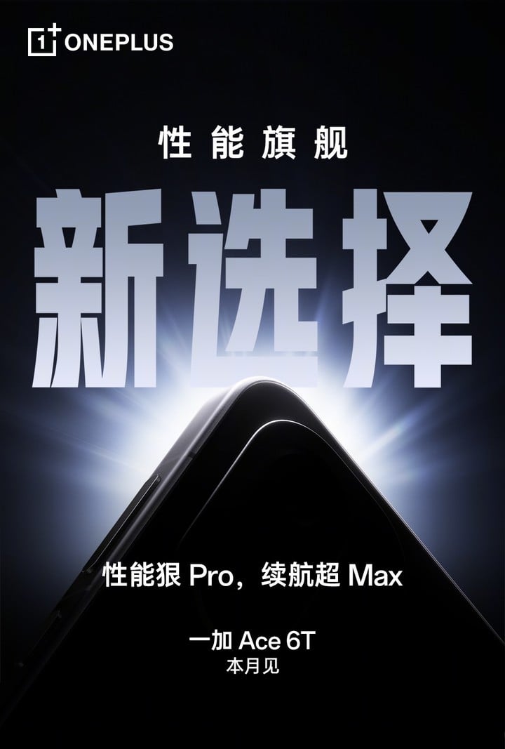 一加 Ace 6T 官宣:性能狠 Pro,续航超 Max
