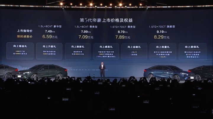 但吉利偏偏就这么干了。就在刚刚,第五代帝豪正式上市。官方指导价 7.49 万 – 8.29 万元,配合限时权益,起售价直接杀到了 6.59 万元。