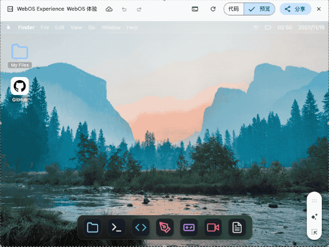 我要求它用单个 HTML 文件复刻一个完整的 macOS 系统, 包括文本编辑器、终端、代码编辑器、文件管理器、画板、视频编辑器等预装软件。生成的结果虽然审美一般, 但核心交互逻辑都实现了。
