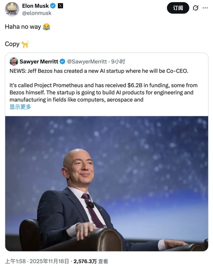 🔗 相关阅读:两个世界首富吵起来了!贝索斯融资 447 亿复出搞 AI,马斯克:跟屁虫