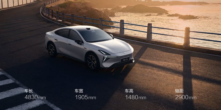 新车长宽高分别为 4830mm、1905mm、1480mm,轴距 2900mm,迈入了 B 级车的门槛,整体车身姿态相当运动。