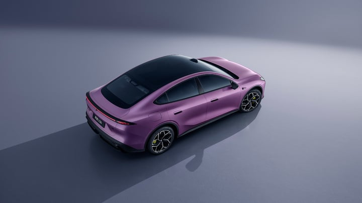 车身侧面的运动风格更是一览无遗,超窄无边框后视镜、车四门无框车门、随速无极可调电动尾翼、双灯带悬浮尾灯、花瓣状运动轮毂进一步加强了这辆车的运动气质。