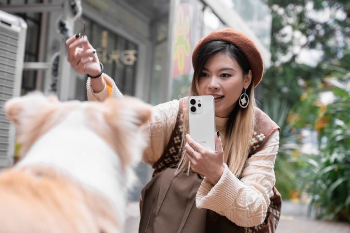 在原本三拼实况图的基础上,OPPO Reno15 允许用户选中带有人物或宠物的实况图进行「出圈」,将被拍摄对象的动态单独抠出放大,形成一种突破背景的效果。