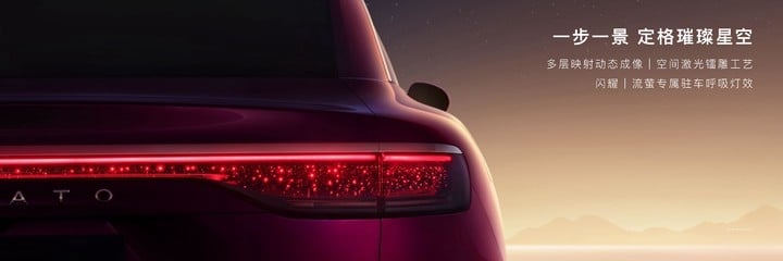 而尾灯位置则用上了全新的「星云尾灯」,采用了空间激光镭雕工艺,配合流萤专属驻车呼吸灯效,让灯条内部呈现出如群星闪耀的璀璨星空。