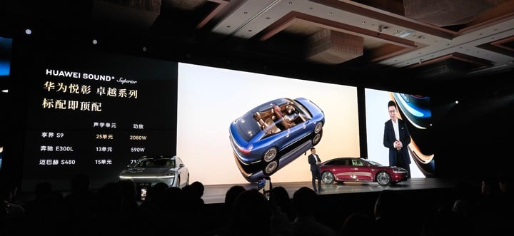 车内搭载了「华为悦彰·卓越系列」音响,配备 25 个发声单元,功率高达 2080W,声场和响度都相当震撼。好在它再次升级了隔音设计和材料,根据官方视频的表现,基本上车外的噪音会被隔绝在车外,反之车内的澎湃音响也不会惊扰到车外。