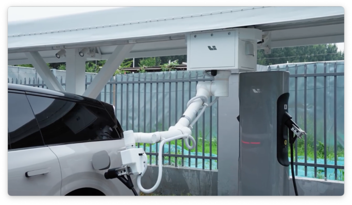 不过此前理想已经公布了「龙门架」形式的自动充电机器人,单个机器手就能覆盖站点的多个充电桩位,能自动识别车型充电口与枪头,实现「人不下车,自动插枪」。