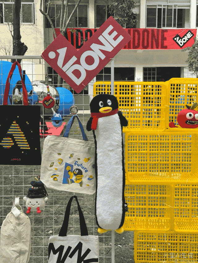 这是我们昨天在未来社的活动照片,奖品展示区,挂着的这些公仔和背包,让它们都动起来了。