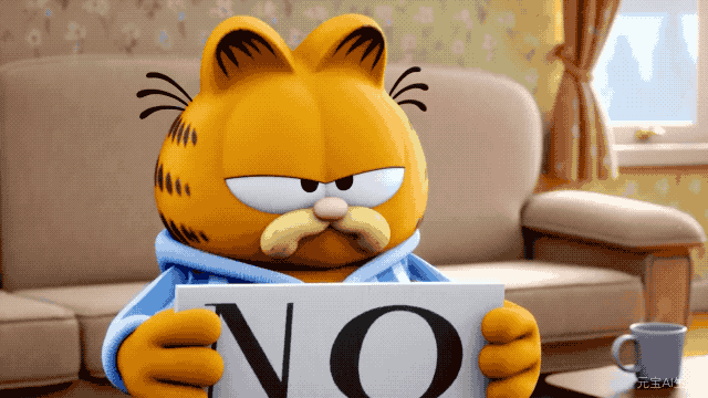 或者让一只加菲猫摇头说「No」。输入提示词,「生成视频,一只肥胖的加菲猫,穿着睡衣,手里举着一个白色的牌子,牌子上写着黑色的 NO,它在疯狂摇头,皮克斯动画风格。」