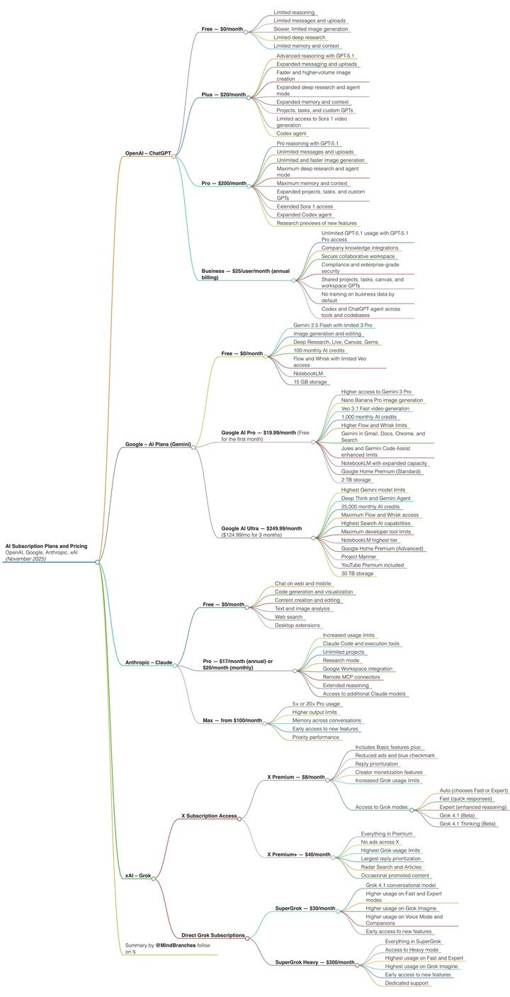 对于 ChatGPT 新上线的购物研究功能,X 上的网友也是各种意见都有。有人说「OpenAI 又一次快速实现了,我的整个创业想法。」、还有网友给出一张密密麻麻的 AI 订阅费用对比,说「AI 能帮我找到最适合的 AI 订阅吗」,也有人犀利的表示「别再破坏我的 ChatGPT 了」……