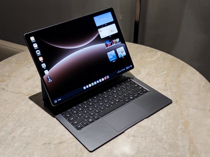 这时,只需要把 MatePad Edge 吸附到新款的「星跃悬浮键盘」上,你的 MatePad 就可以秒变笔记本了——一个运行 PC 版系统的「真 · 笔记本」。