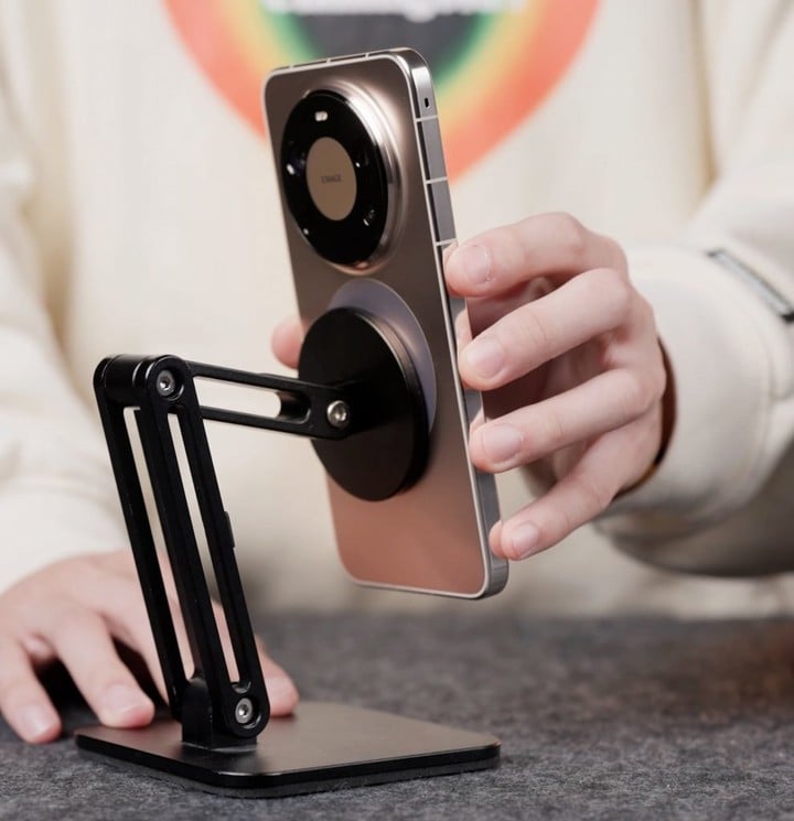 不过下面的圆环并没有我们预想中的磁吸功能,主要还是起到一个造型上的作用。华为官方则推出了一个磁吸手机壳配件,佩戴上就能解锁磁吸能力。
