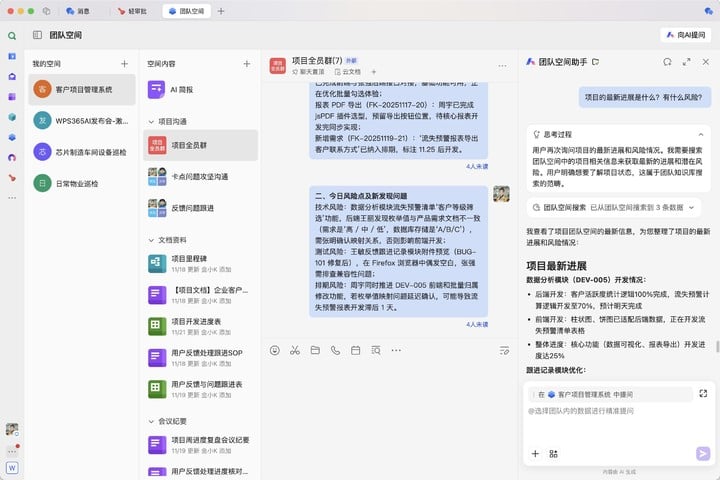 ▲ WPS 365 的团队空间功能