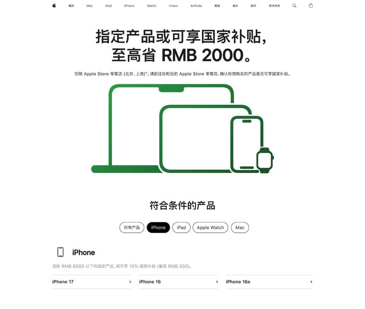 最高优惠 2000 元,苹果北京上海直营店上线国家补贴