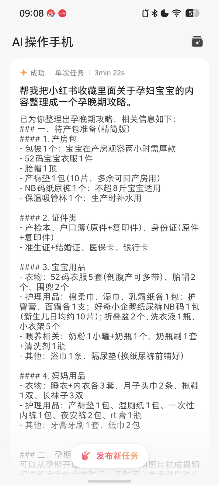 「把小红书收藏夹里母婴内容,整理成孕晚期攻略。」