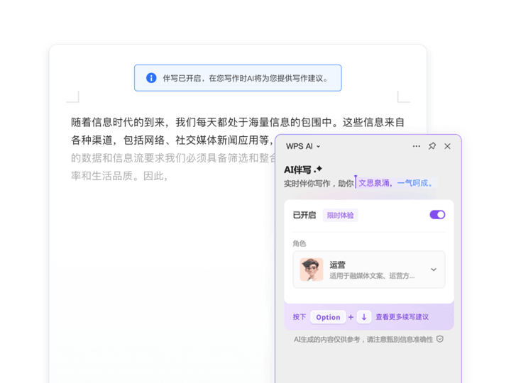 在 WPS AI 的体系里,AI 不是插件、不是外挂,也不是单纯的内容生成器。它是我们文档里的助手,是会议里的整理者,是灵感的第一落点,是 PPT 的合作者。