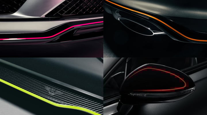 除了琢磨材质,Mulliner 还在思考「触感」。为了让车主能直接摸到木材原本的纹理,工匠们将漆料的用量减少了 90%;碳纤维也不再只有单调的黑色,深李紫、翠鸟蓝等色彩被编织进了碳纤维纹理中——这些都是 460 亿种配置组合的一部分。
