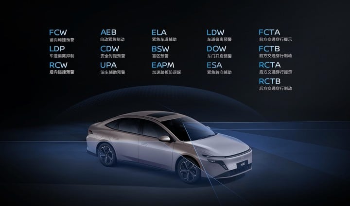 在行驶安全方面,N6 成为行业首款通过中汽中心「插混不失速」认证 的车型,并标配包括 ESA 紧急转向辅助在内的 16 项主动安全功能。