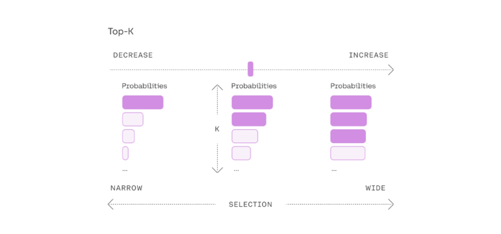 不过,一个冷知识是,模型算法并不总是选择预测中概率最高的词——这解释了为什么同一个 prompt 会得到同一个大意下不同的结果。算法工程中会引入 Temprature、Top-P、Top-K 等方法,为结果注入随机性。