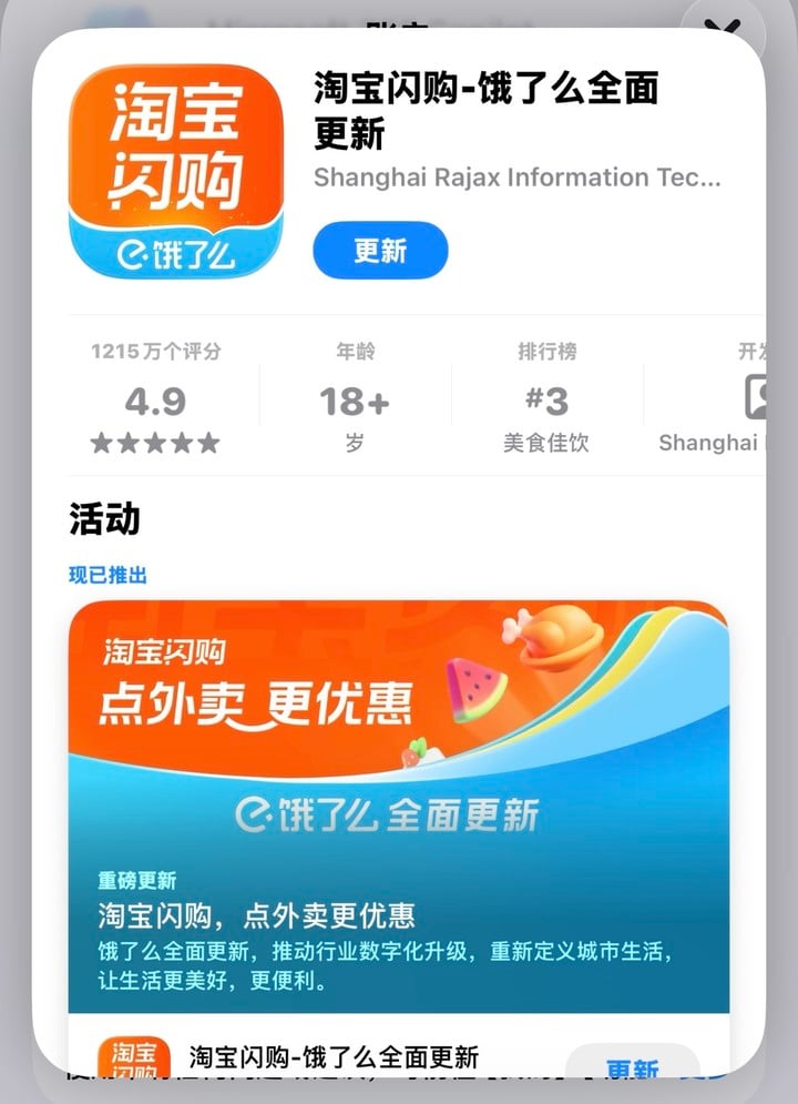 昨天,饿了么 App 更新至最新版本后全面焕新为「淘宝闪购」。此前,骑手服装、官方微博等场景均已完成品牌切换。