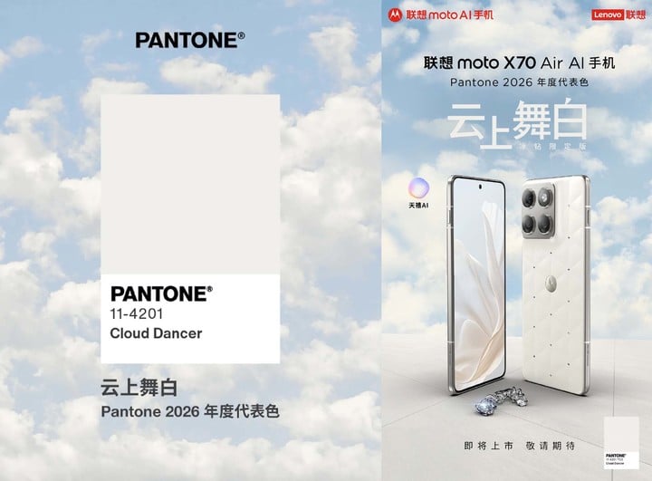 值得注意的是,昨天,联想官方宣布 moto X70 Air 云上舞白冰钻限定版即将上市,采用的配色正是「云上舞白」。