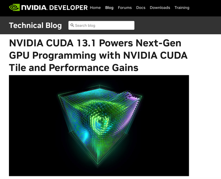 🔗 想了解 CUDA 新功能小伙伴可以前往:https://developer.nvidia.com/blog/nvidia-cuda-13-1-powers-next-gen-gpu-programming-with-nvidia-cuda-tile-and-performance-gains?ncid=so-twit-259531