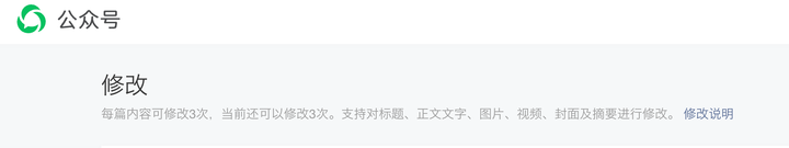 每篇内容可修改 3 次,支持对标题、正文文字、图片、视频、封面及摘要进行修改。
