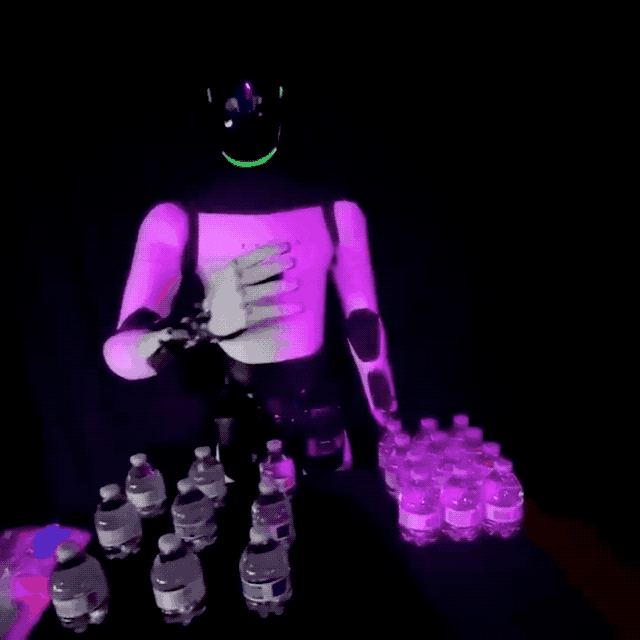 Optimus 突然把双手一抬,像极了人类快速摘下 VR 头显的姿势。紧接着,机器人就像突然断线了一样,踉踉跄跄往后倒,最后「啪叽」一声仰面躺地,水瓶散落一地。