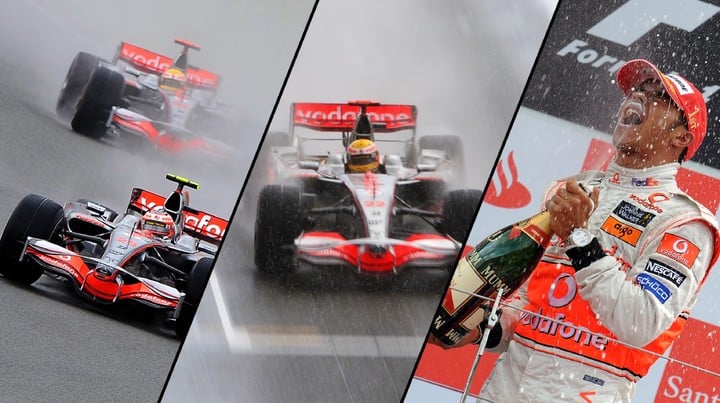 2008 年 F1 巴西大奖赛最后一圈,汉密尔顿在最后一个弯角超越格洛克,以 1 分的微弱优势,为迈凯伦车队夺得了车手世界冠军。
