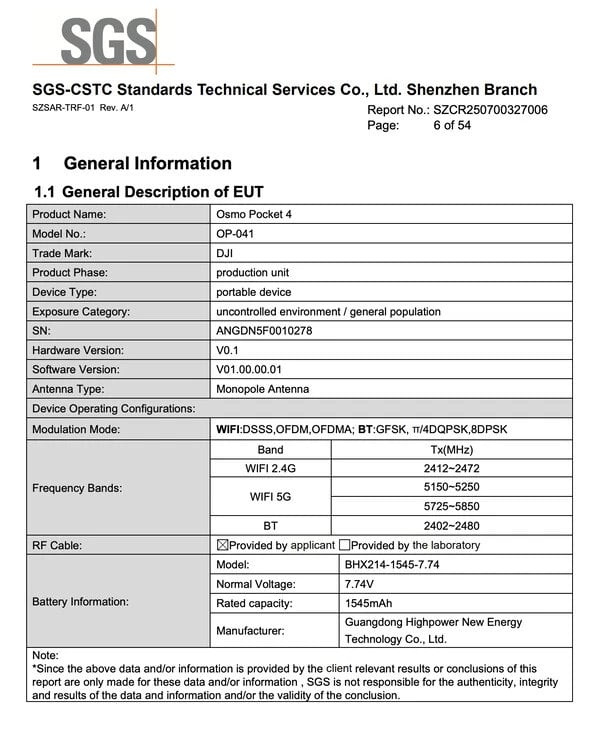 好消息还不止于此。近日,来自美国联邦通信委员会(FCC)的公示资料显示,型号 OP-041 的大疆 Pocket 4 已经完成了 SGS 测试和注册,距离正式发表的距离又近了一步: