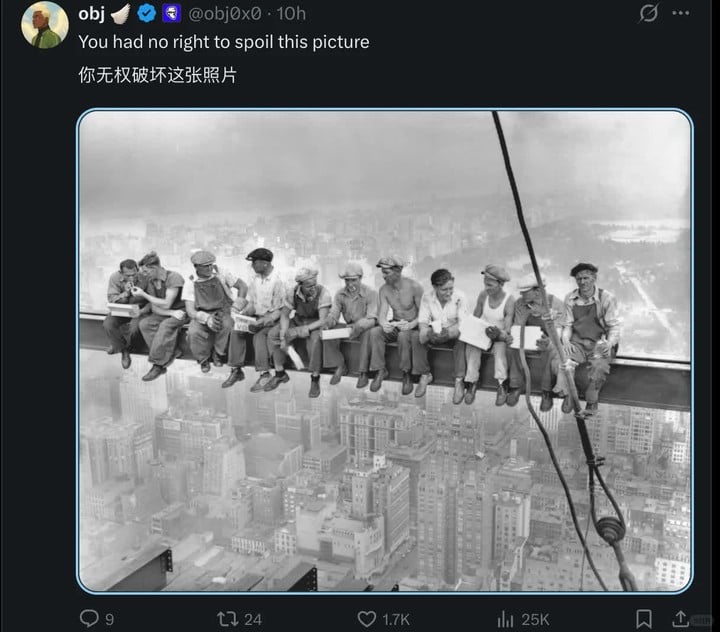 然而,这一设计在社交媒体上引发争议,不少网友批评其「亵渎工人阶级的传世影像」,甚至讽刺《时代》成为「科技垄断巨头的『舔狗』」。