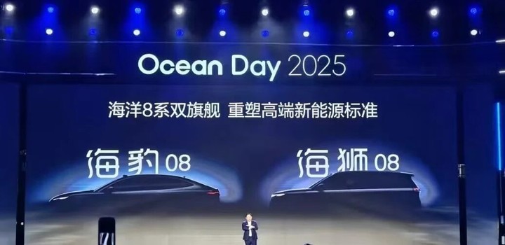 在今晚的四周年庆典活动上,海洋网总经理张卓正式公布海洋 8 系双旗舰车型——海豹 08 和海狮 08。