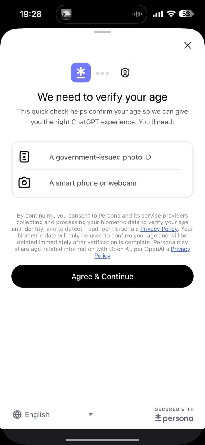 ▲ ChatGPT 为推出成人版本做准备,开始向美国和加拿大用户,弹出年龄认证