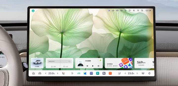 座舱内大量使用软性材质与皮质包裹,以提升整体质感,内饰提供晨曦白、漫午棕与星夜灰三种主题配色,其中漫午棕采用仿麂皮与软质搪塑拼接。