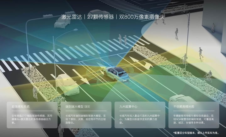 辅助驾驶方面,欧拉 5 配备长城 Coffee Pilot Ultra 高阶辅助驾驶系统,最高搭载 27 个感知硬件,包括 1 颗激光雷达、11 个摄像头、12 个超声波雷达和 3 个毫米波雷达,支持高速及城区领航辅助驾驶、全场景智能泊车(含跨楼层记忆泊车)等功能,覆盖用户高频出行场景。