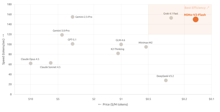 此外,MiMo-V2-Flash 采用 MIT 开源协议,基础版权重也已经在 Hugging Face 上发布,除了开源,新模型真正的杀手锏在于架构设计上的激进创新,把推理速度拉到了 150 tokens/秒,成本压到了每百万 token 输入 0.1 美元、输出 0.3 美元,主打一个超绝性价比。