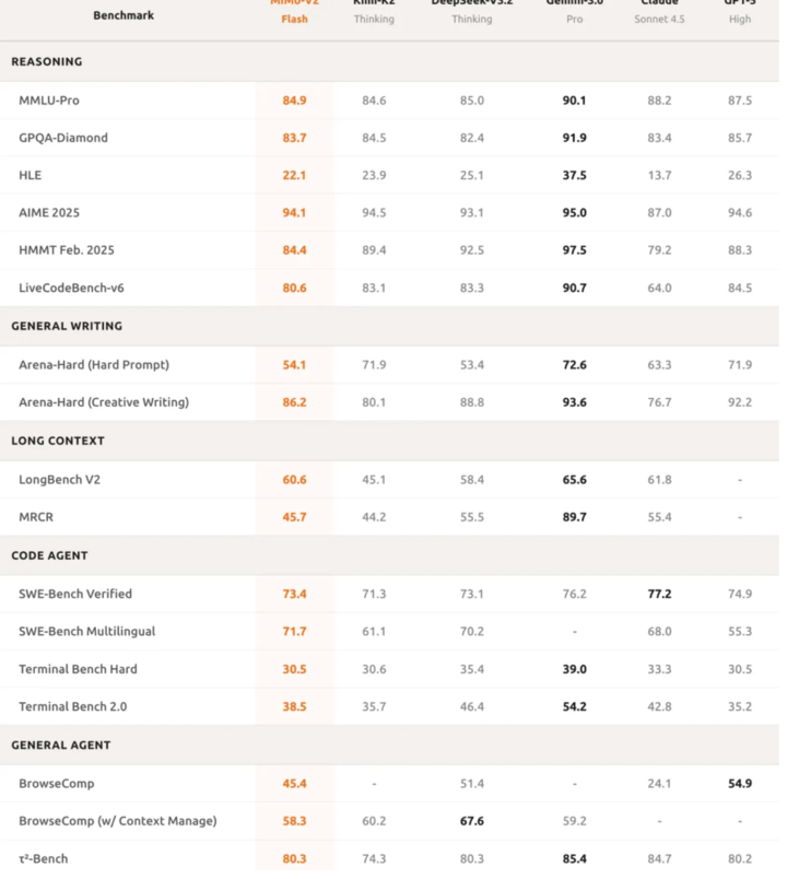 老规矩,咱们先来看看 MiMo-V2-Flash 的跑分环节。