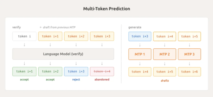 另一个黑科技是轻量级多 Token 预测 (MTP)。