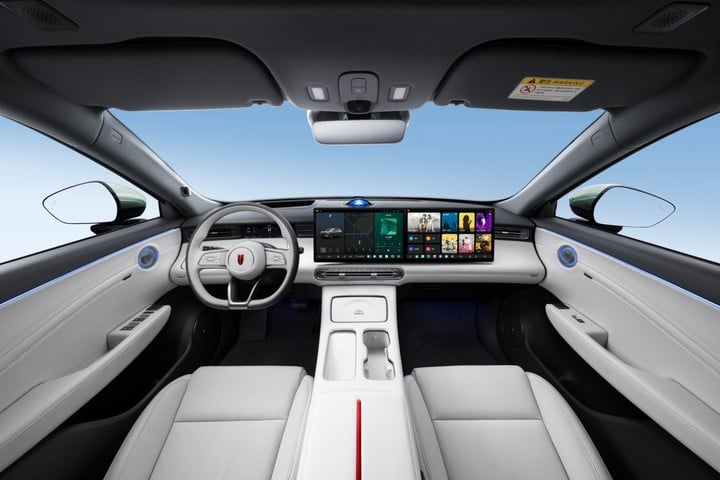 车辆前脸采用「龙睛」厚壁光导大灯与「龙须」日行灯组合,尾部则采用「凤翎」贯穿式尾灯,通过光影层次营造科技感 。车身侧面承袭了经典的「船式车身」姿态,通过 A 柱和 C 柱反向延长线交点后移的视觉重心设计,营造出端庄稳重的气场。新车还引入了无边框外后视镜和隐藏式雨刷等细节设计,以进一步降低风阻并提升现代感 。