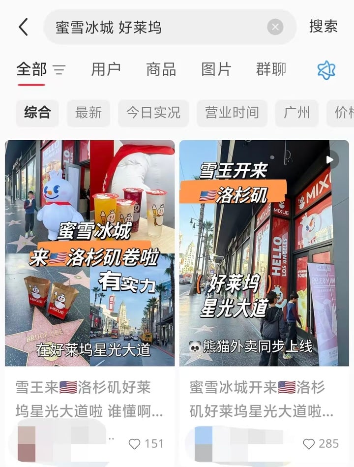 界面新闻消息,日前有多名网友在社交平台分享在美国好莱坞看到了「雪王」,有网友分享其在洛杉矶蜜雪冰城门店购买打卡的体验。