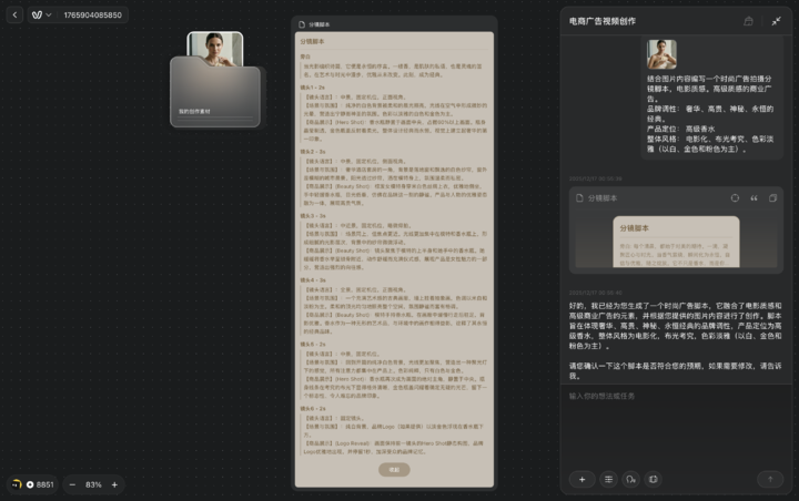 在过去,制作一条专业的电商 TVC 或爆款短视频,需要编导、摄影、剪辑组成的团队,以天甚至周为单位来打磨各种细节。这道由技术和成本构筑的「护城河」,曾将无数中小创作者挡在门外。