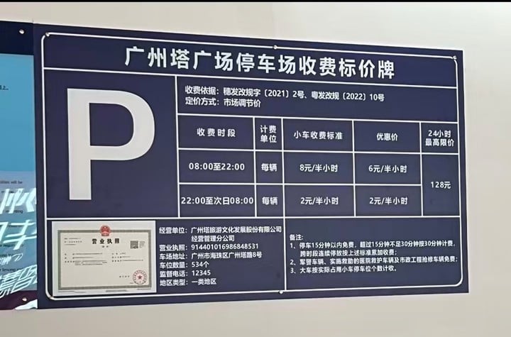 以广州天河 CBD 珠江新城为例,这里的停车费被车主们戏称为「天价刺客」。临时停车费最高可达 26 元/小时,单日封顶 328 元。而在一些更高端的商业场所,价格直逼 30 元/小时且不设上限。